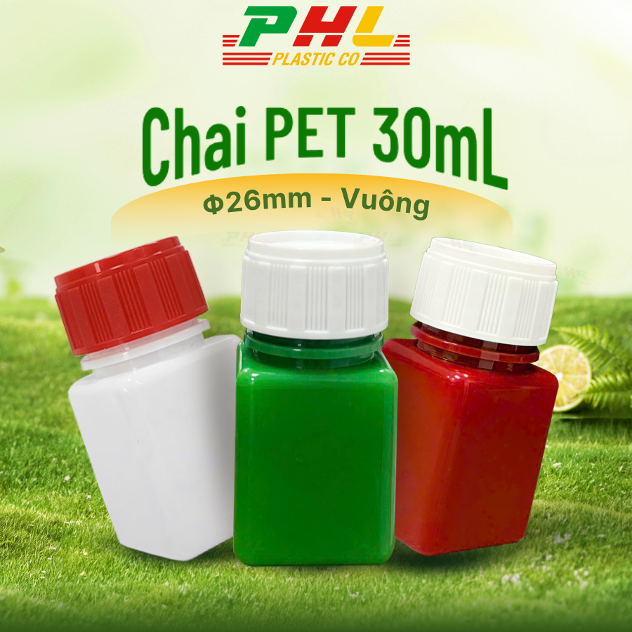 P30V26 – Chai PET 30mL ø26mm Vuông