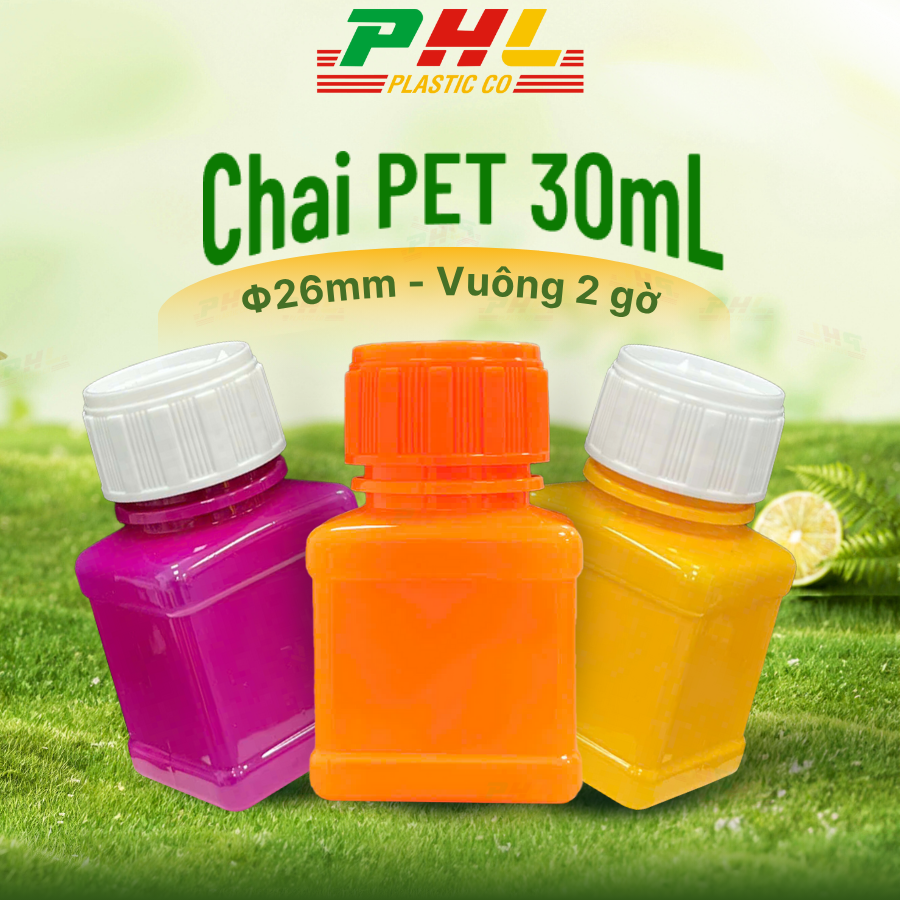 P30V2G26 – Chai PET 30mL ø26mm Vuông Hai Gờ