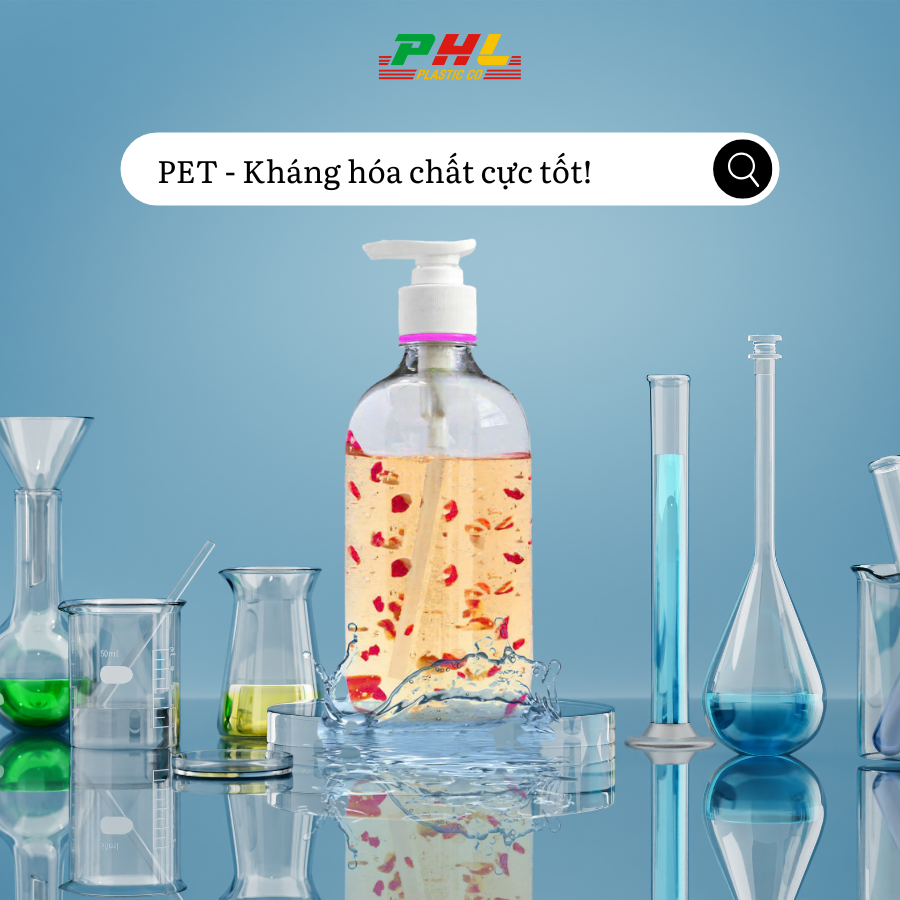 Đặc tính nổi bật thứ hai của nhựa PET chính là khả năng chống ăn mòn và kháng hóa chất. So với nhiều loại nhựa khác, PET ít bị ảnh hưởng bởi: