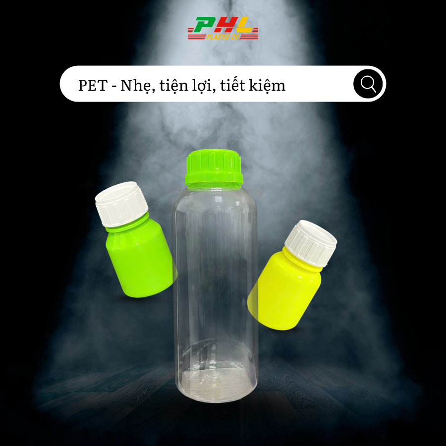 - Ngành nông nghiệp: chai PET đựng phân bón lá, thuốc BVTV, chế phẩm sinh học.