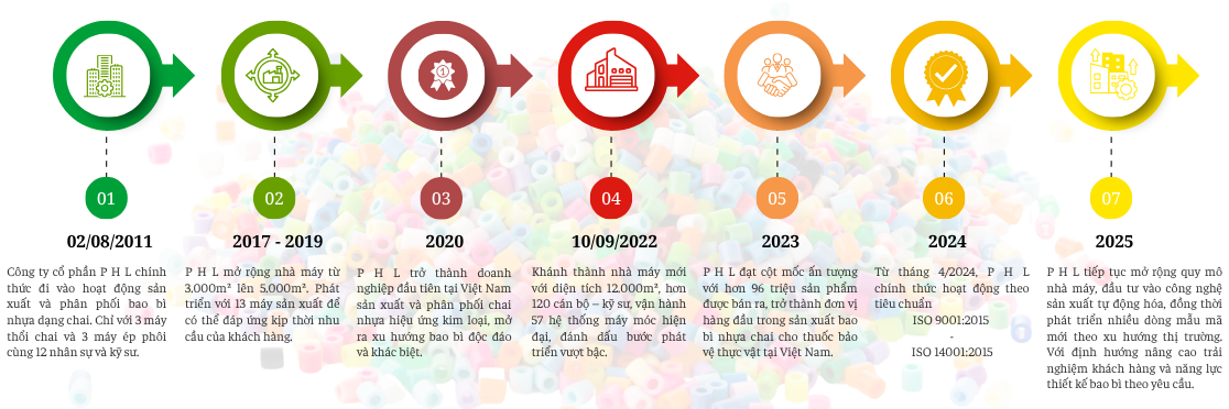 Trải qua hơn một thập kỷ phát triển, P H L không ngừng đầu tư công nghệ, mở rộng quy mô sản xuất và hoàn thiện hệ thống quản lý chất lượng, hướng tới mục tiêu trở thành đơn vị dẫn đầu ngành bao bì nhựa tại Việt Nam và khu vực Đông Nam Á.