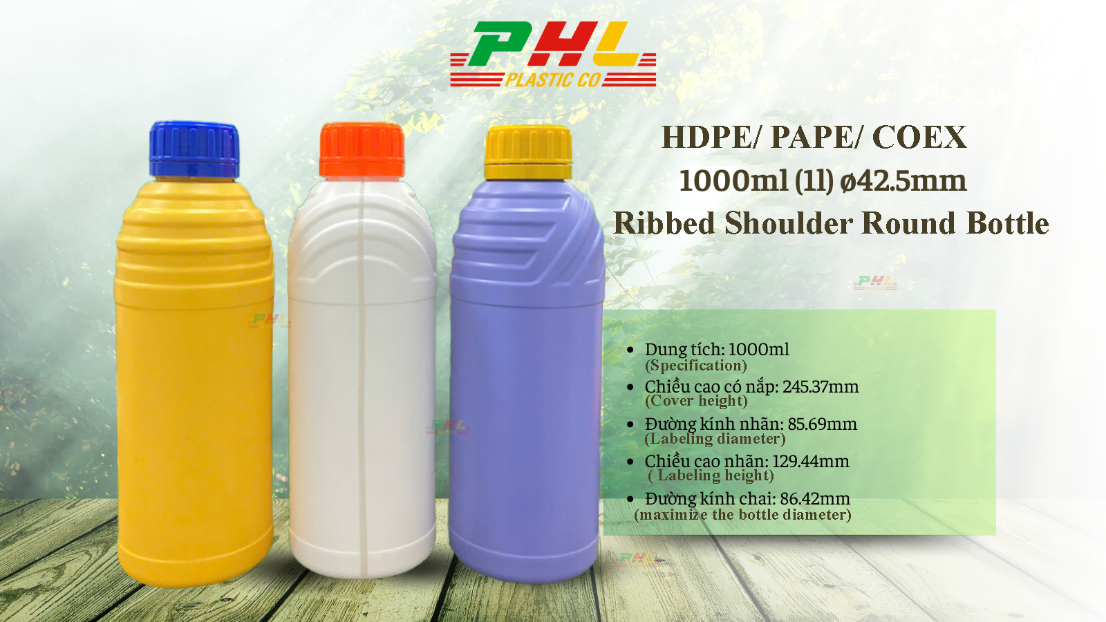 Chai HDPE/COEX 1000mL (1L) ø42.5mm Tròn Vai Gân là lựa chọn bao bì tối ưu, vừa mang lại giá trị sử dụng bền bỉ, vừa hỗ trợ nâng tầm thương hiệu doanh nghiệp.
