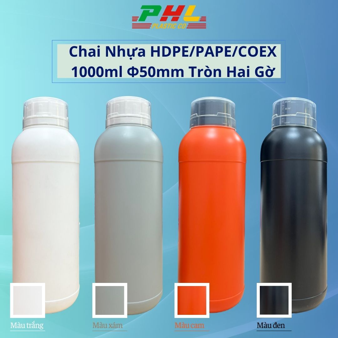 Chai HDPE/COEX 1000mL (1Lit) ø50mm Tròn Hai Gờ